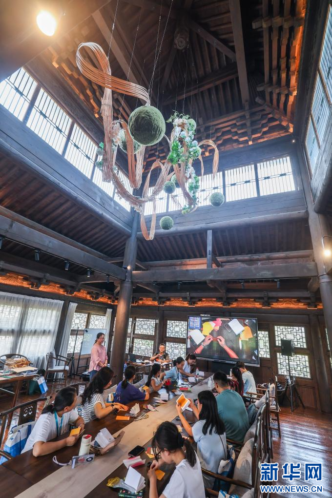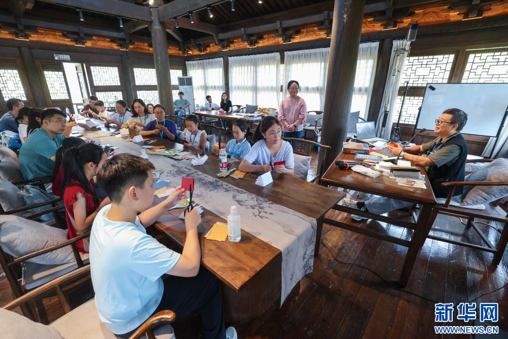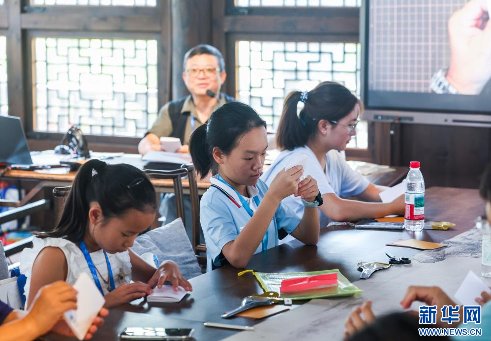 近期,浙江省桐乡市濮院时尚古镇开启夏日特色亲子游系列活动,以“文旅+研学”的互动体验形式,开展包括折纸夏令营、手工编织、国学课堂等活动,助力古镇夏日特色旅游发展。新华社记者 徐昱 摄