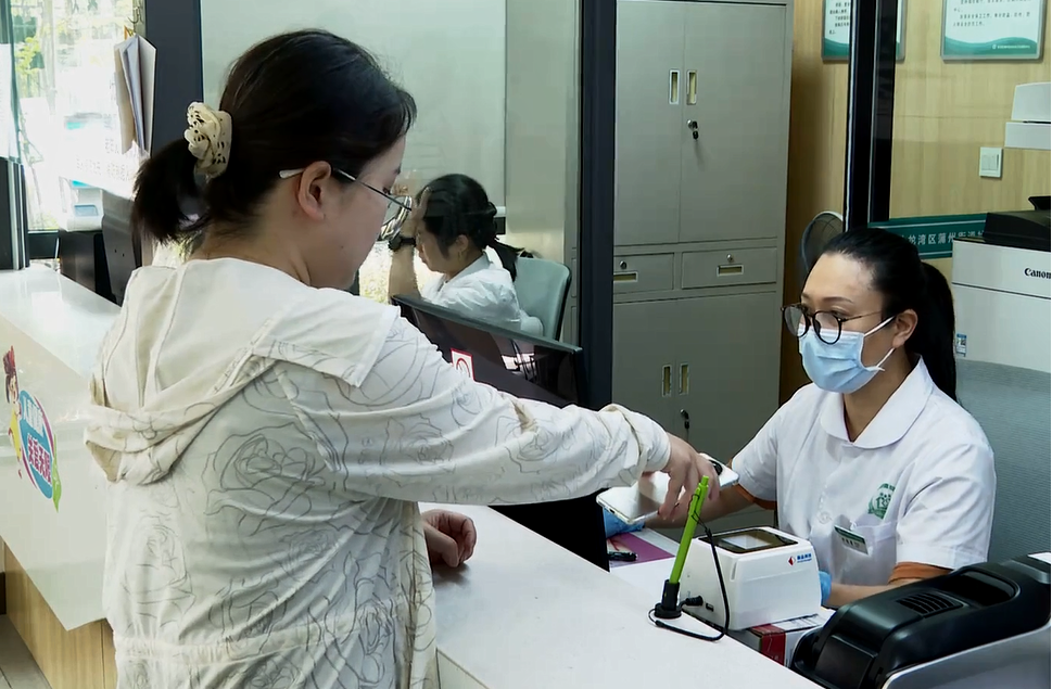 市民在龙湾区一家社区卫生服务中心亮码办理健康证。温州市龙湾区市场监管局供图