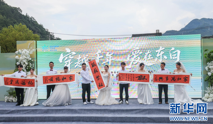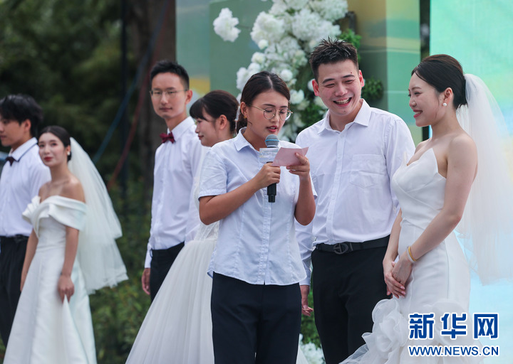 8月20日,新人在诸暨市东白湖镇斯宅村参加集体婚礼。
