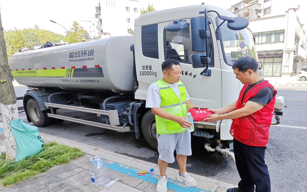 “香溢”志愿者为清扫车司机送上冰镇饮品与清凉包。余盛兵 摄