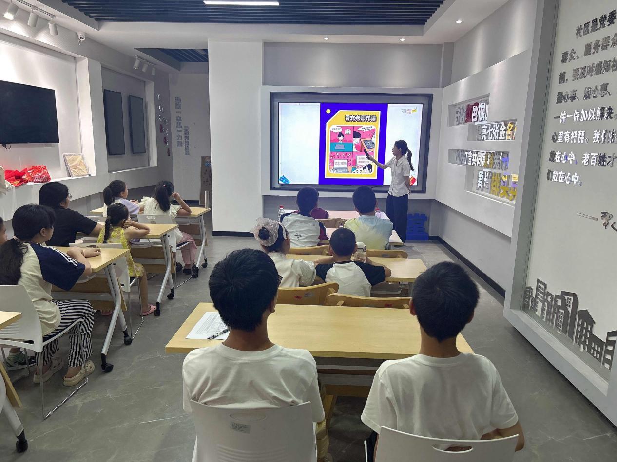 工作人员化身“金融老师”,用动画短片和情景模拟讲解货币起源、储蓄意义等基础金融知识,孩子们认真聆听,积极举手提问,现场气氛活跃。在讲解金融知识之余,工作人员向孩子们和家长介绍生活中常见的诈骗套路和手法,提醒家长和孩子“不轻信、不透露、不转账”。社区居民周女士表示:“这样的活动既有趣又实用,孩子学到了知识,我们也提高了警惕。”