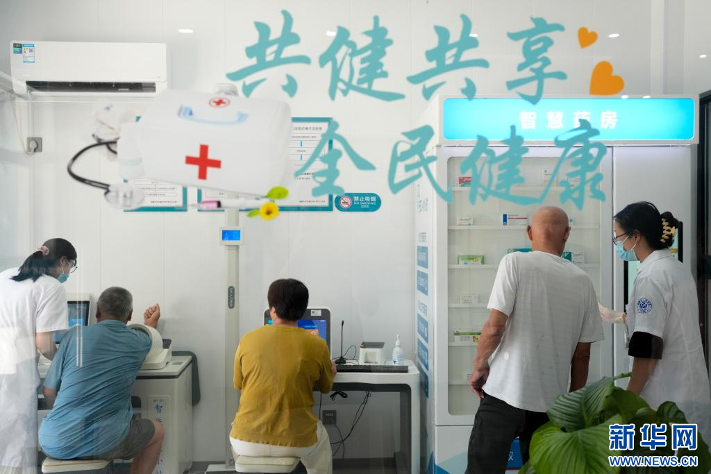 8月26日,在安华镇矿亭村卫生室智慧化诊室,附近村民在护士引导下进行自助医疗、自助取药。