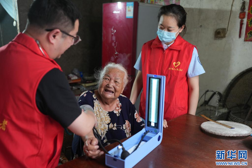 近年来,浙江省诸暨市安华镇着力打造“医养融合”服务网,公共卫生服务覆盖老年生活全场景。安华镇以两个片区化中心村卫生室为中心,推动智慧化远程医疗服务落地应用;同时推出家庭签约服务,组建医疗服务志愿队,上门关爱居家老人,提升老年人生活质量与健康保障。新华社记者 翁忻旸 摄