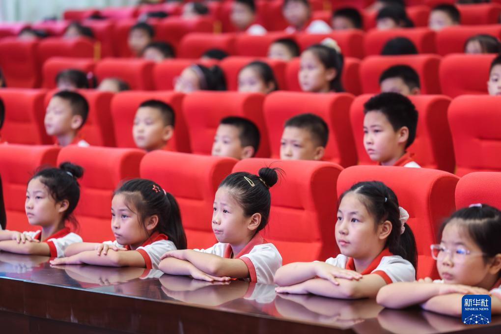 9月4日,北京师范大学南湖附属学校的学生们在学校大讲堂参加开学第一课《红船精神》。