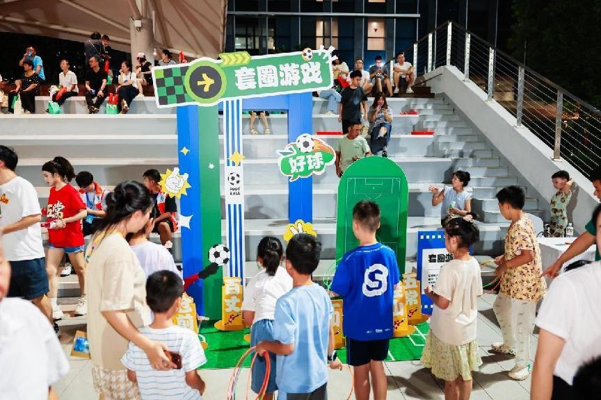 赛场外,大会设置的“游戏互动区”吸引了众多小朋友参与。进球挑战赛、套圈小游戏等趣味活动让孩子们在观赛之余也能享受运动的乐趣,孩子们在游戏中相互礼让,展现了五常新一代的文明素养。