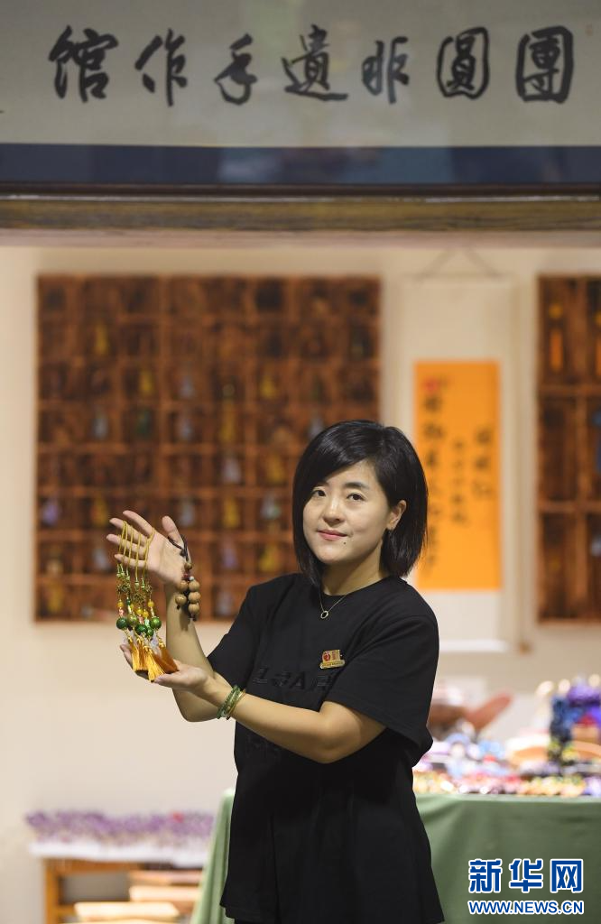9月9日,在临安龙岗镇一家山核桃生产企业,负责人陈洁展示利用山核桃空籽制作的文创产品。
