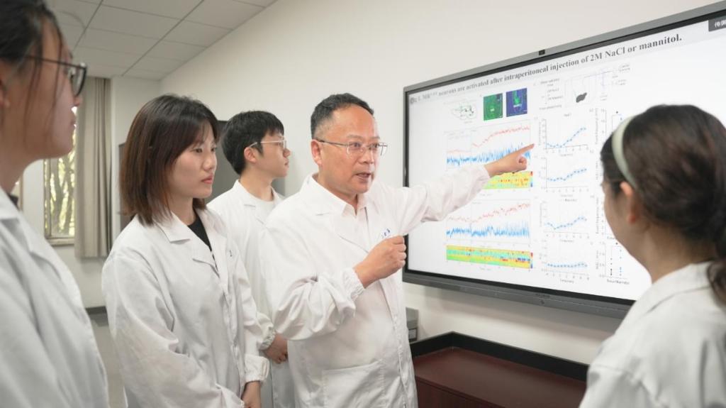 担任浙江中医药大学校长以后,他深入研究中医药的现代化之路,既要让中医药保持自身的精髓和特色,又能用现代语言与世界对话,更好地造福全人类。对于陈忠来说,这是一条充满挑战但意义非凡的道路。作为带头人,陈忠带领团队聚焦“脑病中医药理论现代化与中西医结合防治研究”,利用现代神经科学、流行病学、生物学、大数据人工智能等多学科交叉技术,探索中医现代化发展的科技创新范式。带领团队形成了一支爱国敬业、德才兼备,中西医结合的多学科交叉脑病研究教师队伍。在和临床医生的交流过程中,他发现清热开窍“中药冰片”“开窍定神法”针刺百会穴均可通过抑制兴奋性突触功能而发挥控制癫痫及耐药形成的作用。这更加坚定了陈忠要以现代科学解读中医药学原理,让中医不再“玄而又玄”的信念。