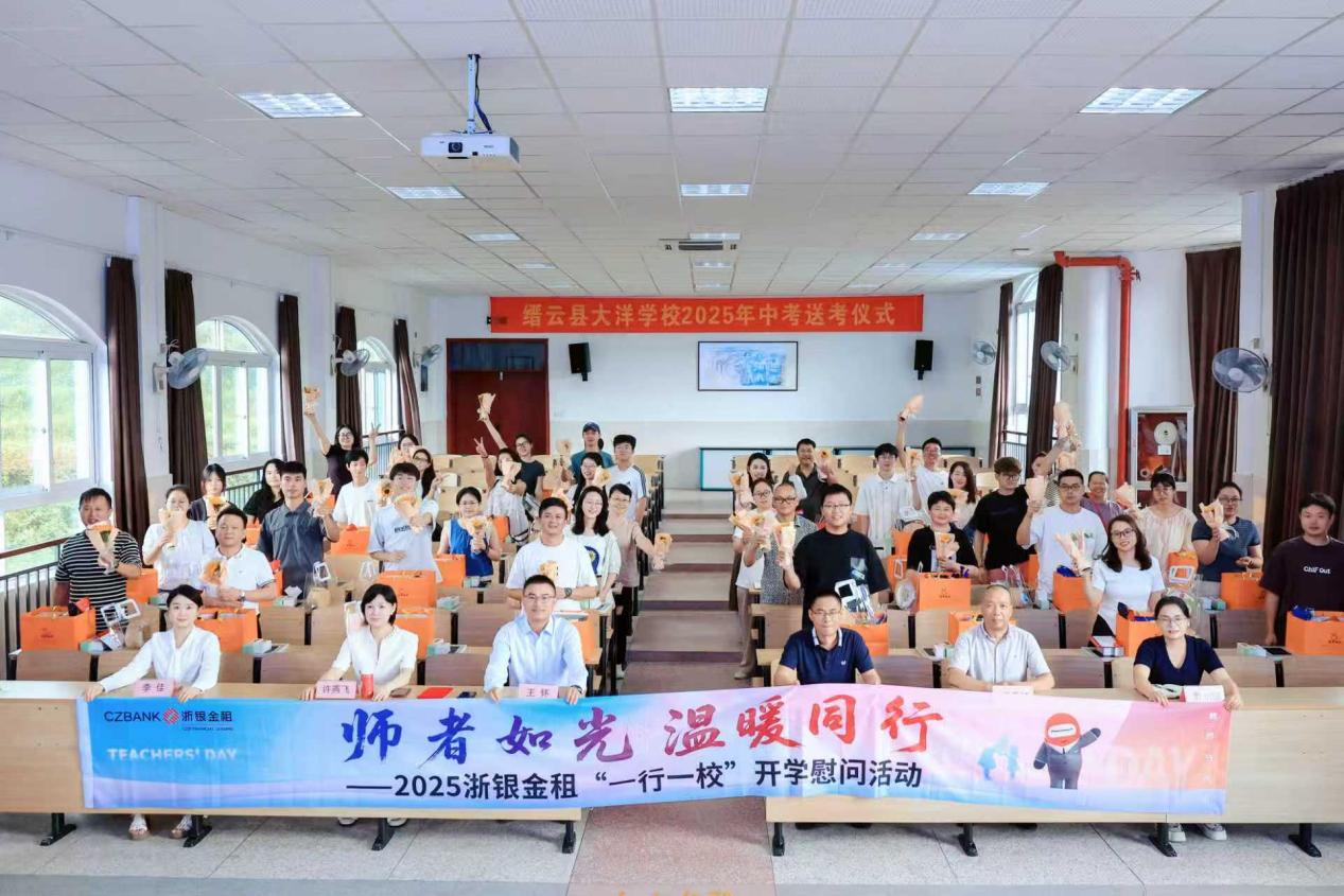 9月10日,浙江浙银金融租赁股份有限公司(以下简称:浙银金租)党委委员、董事会秘书王怀带队赴丽水缙云大洋学校,开展“师者如光 温暖同行”开学慰问活动。通过节日慰问、公益讲座、困难帮扶等系列行动,向扎根山区的教育工作者致以崇高敬意,为莘莘学子点亮求学希望。