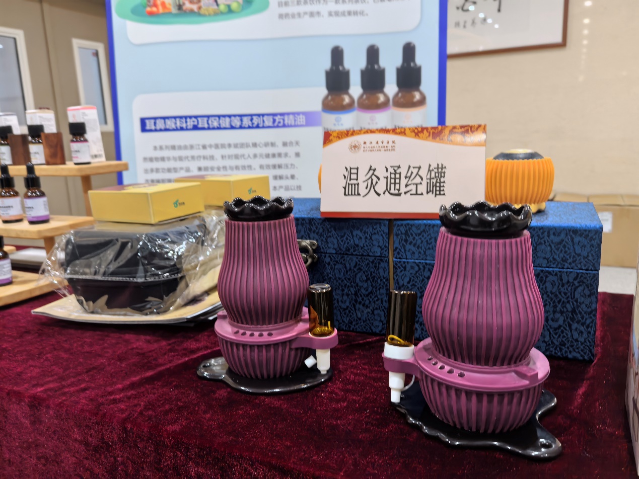 会展的特展区,浙江省中医院的展位人气高涨。在“五行月饼”的展示区,小吴颇有兴趣地向企业方了解情况。“我老远就闻到精油的香味,到了之后发现不仅有中药精油,还有许多浙江省中医院其他的成果转化产品。”她说,“以前知道浙江省中医院的乌梅汤很火,没想到还有五行香囊、温灸温经罐……真的是大开眼界。”近年来,浙江省中医院中在药新药研发、智能诊疗设备共创、中医药经典名方转化、大健康产品研发等多个领域持续发力,取得可喜成果。