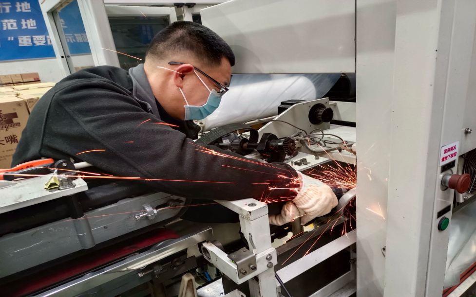 创新团队成员对标准分拣线包装机进行改造。
