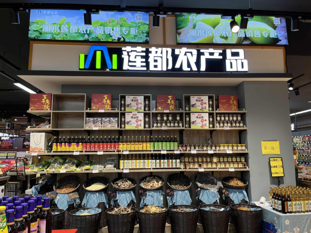 “莲都山超”里,摆满了来自莲都的优质农产品。莲都区委宣传部供图