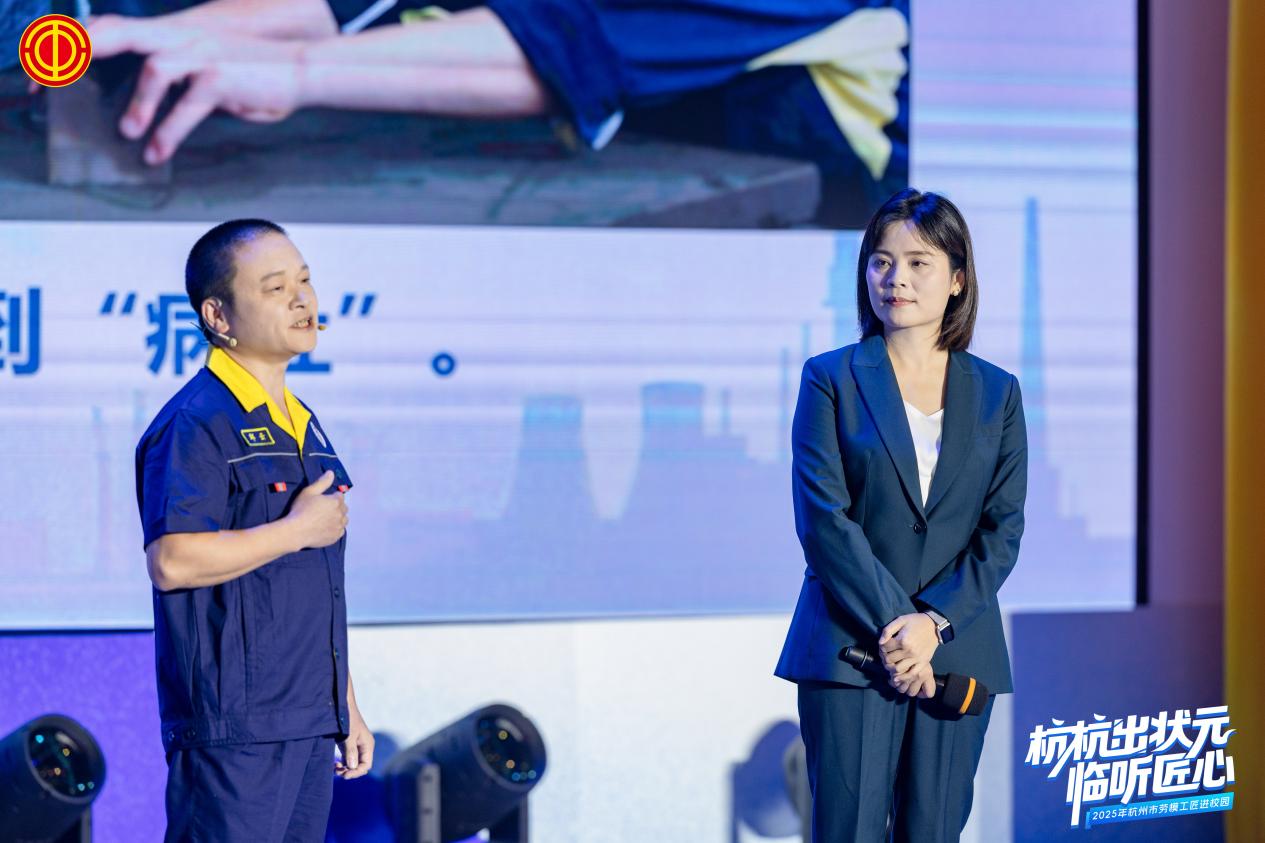 9月16日,浙江省杭州市总工会开展“杭杭出状元·临听匠心”2025年劳模工匠进校园活动,以青春为幕、以匠心为灯,将“三个精神”融进深情而铿锵的时代课堂,讲述劳动创造传奇、匠心照亮时代的杭州故事。