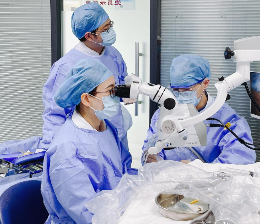 浙大口腔医院专家在武义分院联合开展口腔显微根尖手术。医院供图