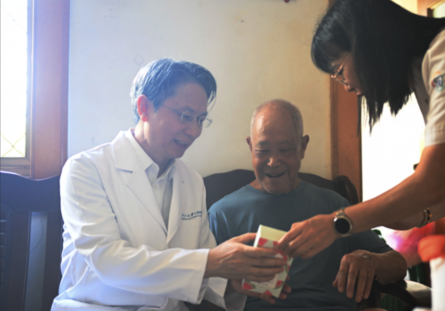 段胜仲看望慰问“口福行动”服务对象、参加过抗美援朝战争的老同志。医院供图