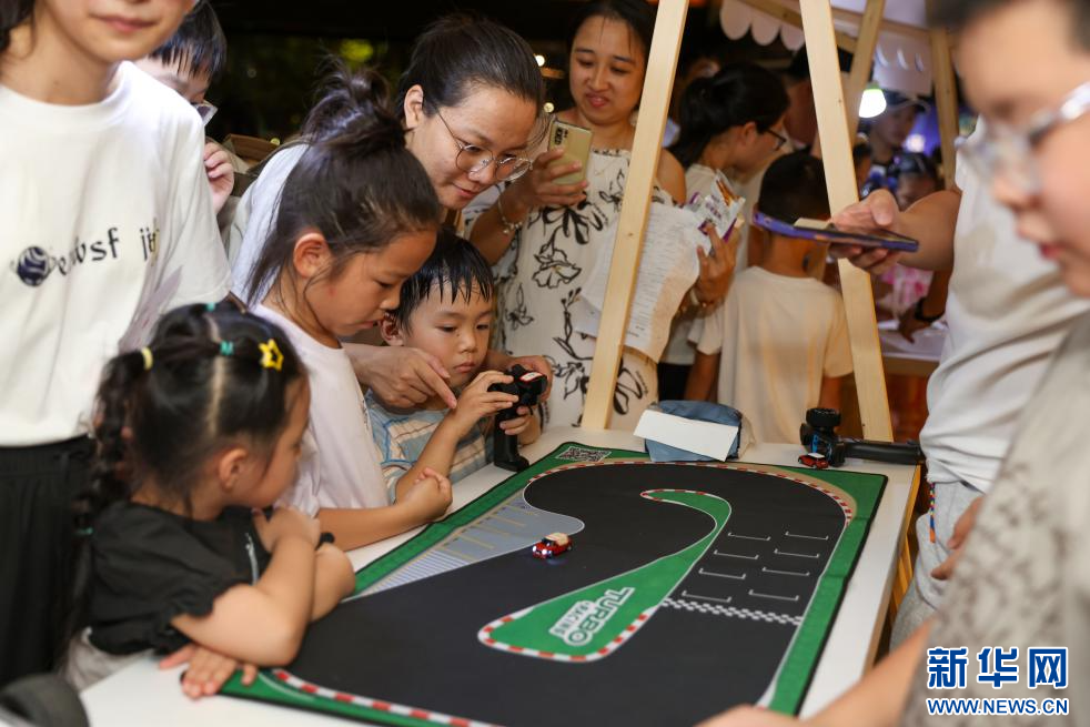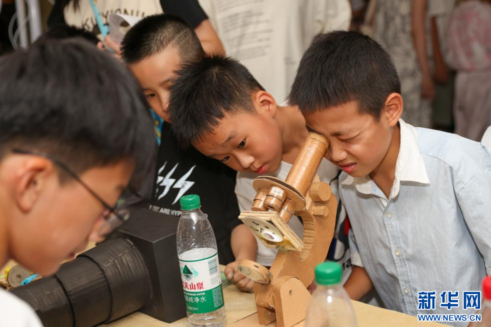 2025年9月13日,孩子们在“科学夜市”上亲手操作相关实验。新华网发 王斌 摄