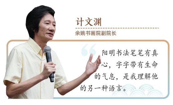 活动现场,计文渊展示了《思归轩赋》墨本书迹。他提到,今年5月王阳明书法手卷《王文成公诗翰》拍出1.09亿人民币,印证了其艺术与思想的双重价值。“阳明书法与心学一脉相承,笔触遒劲洒脱,结构新奇却沉稳,是‘格物致知’的载体。