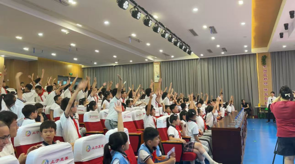 为帮助学生记忆反诈要点,活动组织了三百多名学生齐跳手势舞。他们通过拍手互动、朗诵口诀的方式,记住“转账要核实”等重要的防骗知识。