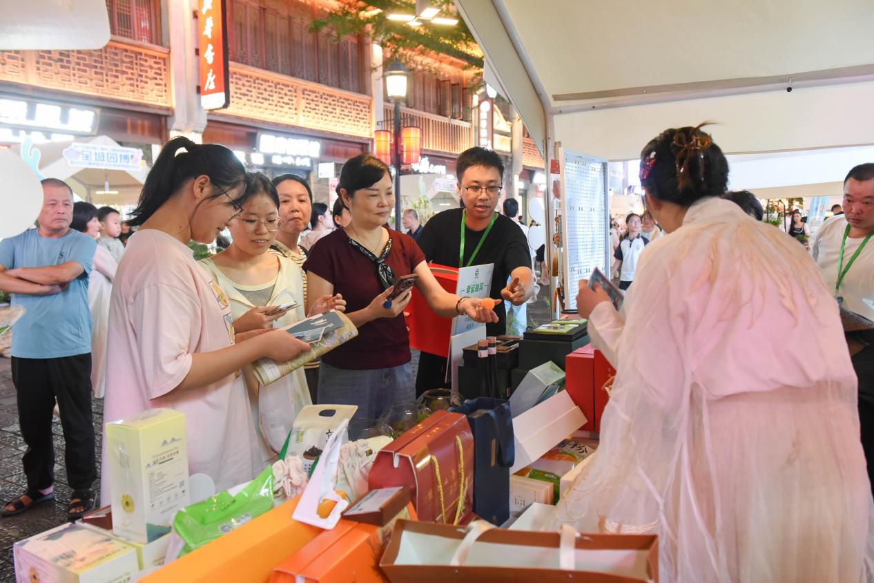 9月26日,第十五届中国(温州)国际园林博览会 “全城园博”暨金秋文旅消费季活动在浙江省温州市鹿城区五马历史文化街区举行。从文旅景观展示到文品天成特色农产品,文成40余款特色产品参加此次展会,“文成元素”备受市民青睐。