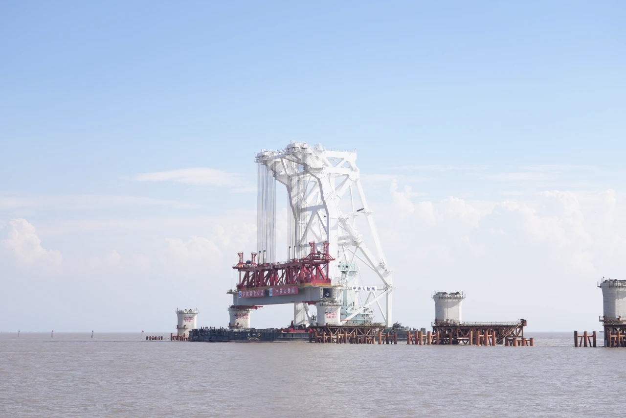 9月27日,杭州湾跨海铁路大桥建设迎来重大节点——由沪杭客专公司统筹管理,中铁大桥院与中国铁设联合设计,中铁大桥局承建的全桥首孔80米预制混凝土箱梁,完成107-108#桥墩架设任务。这一里程碑式突破,宣告大桥全面进入上部结构施工新阶段,为后续工程推进奠定坚实基础。