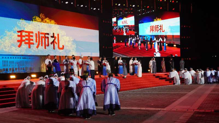 展演尾声,《一“礼”成人》以庄重拜师礼将现场氛围推向高潮。全体新生庄严宣誓,铭记“励志、惟实、博爱、精致”校训,立志成为有担当的旅游英才,以此开启人生新程。