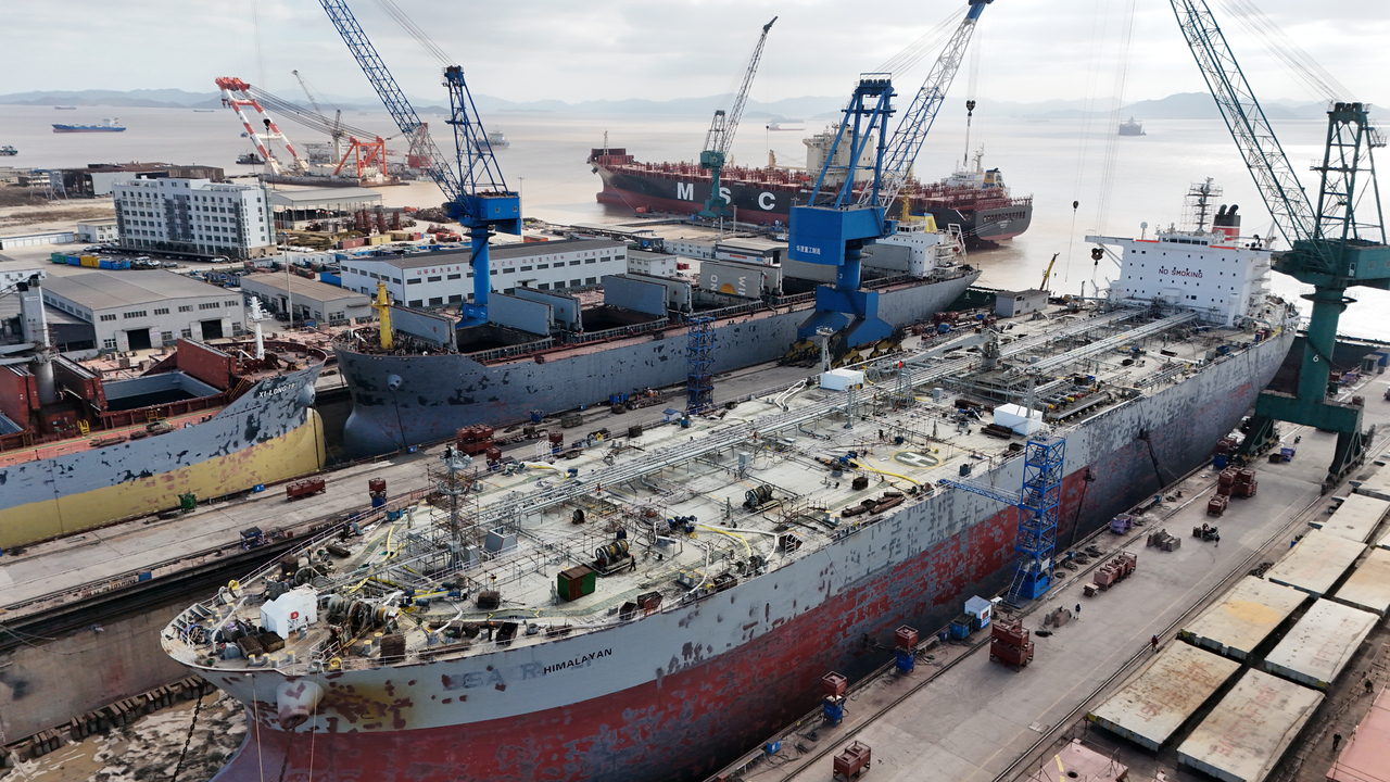 在浙江舟山港域,巨型油轮络绎不绝,往来穿梭。