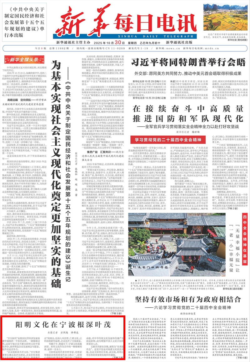 与中国社会科学院历史研究所合作成立“国际阳明学研究中心”,先后举办3届“国际阳明学研讨会”,编辑出版《国际阳明学研究》4部,成立宁波市中华文化海外传播联盟、阳明文化海外(瑞士)传播中心等……近年来,宁波市聚力实施阳明文化全球传播联盟构建、溯源研究传承弘扬、共创共绘艺术交流等“六大工程”,持续拓展阳明文化海外交流平台和渠道,推动阳明文化元素“出海远行”,讲好中国故事。