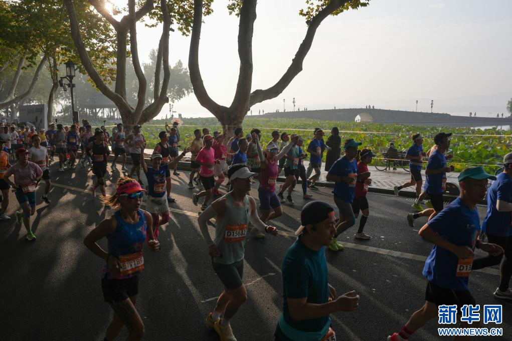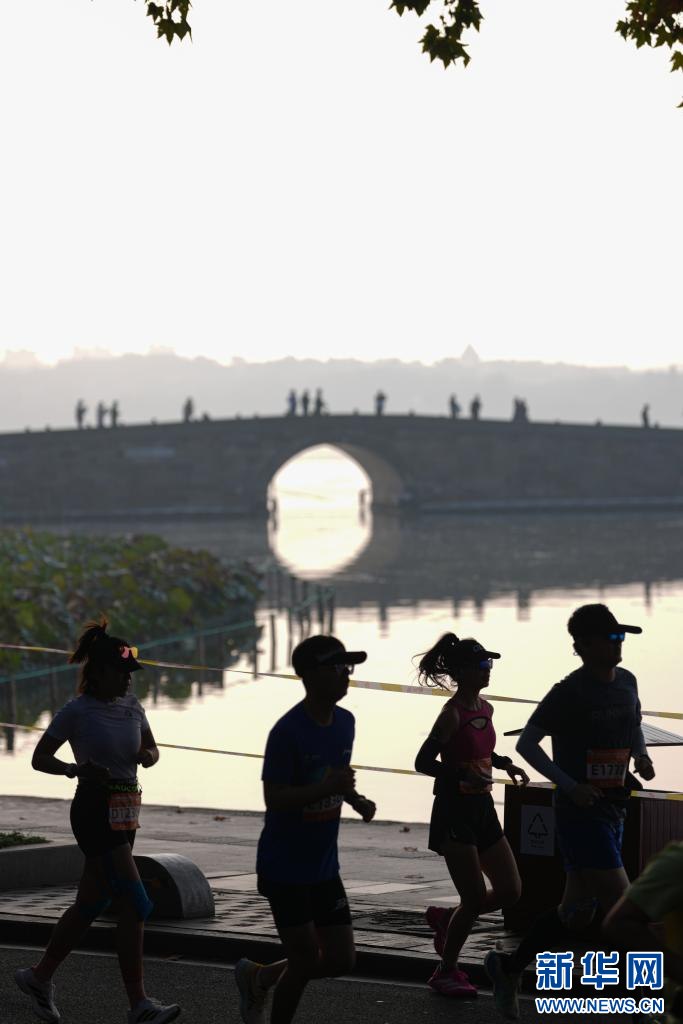 11月2日,参赛选手在比赛中经过西湖景区断桥附近。