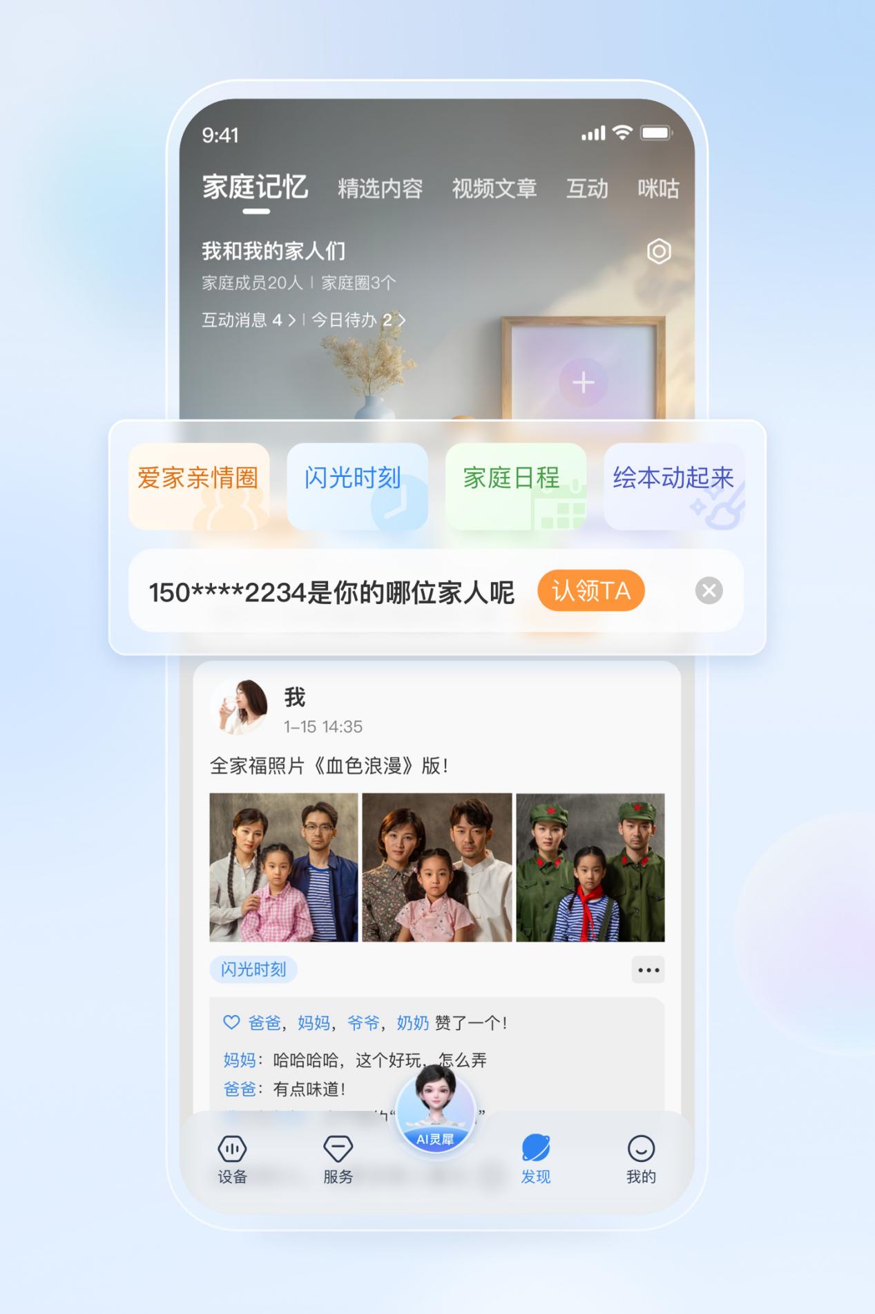 新增AI生成内容功能,支持智能相册管理、AI剧本互动、语音日记生成等创新应用,以技术丰富家庭互动方式,让爱意在数字空间中更生动地传递。