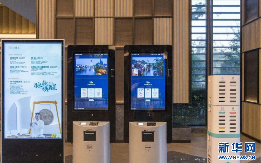 在乌镇入住酒店,支持“刷脸”入住、一键退房,让入住更便捷。新华网发