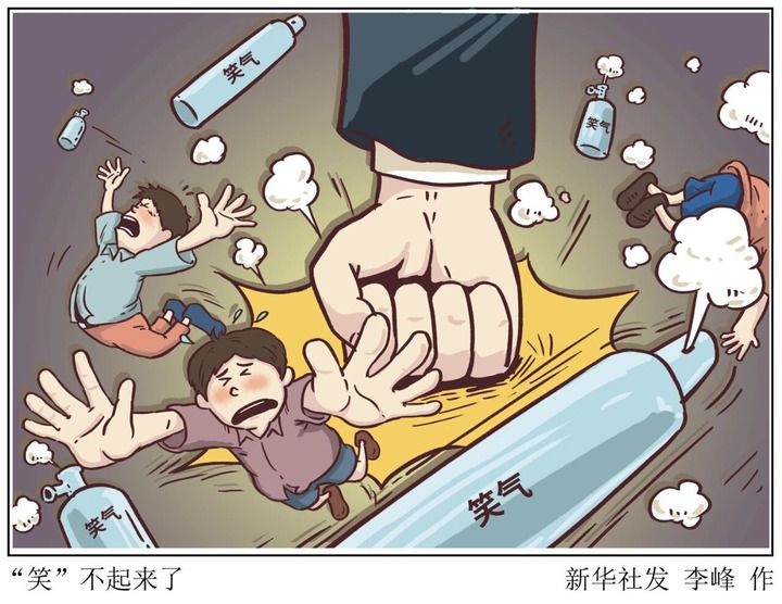 据谢梁介绍,对个体来说,“笑气”会导致严重健康问题,包括神经萎缩、痴呆、心肌梗死、双下肢肌无力、行走困难、大小便失禁、瘫痪乃至死亡;对社会来说,吸食者产生的致幻、谵妄等严重副作用,可导致仇视社会、极端报复、自伤自残等行为,严重影响社会安全稳定。