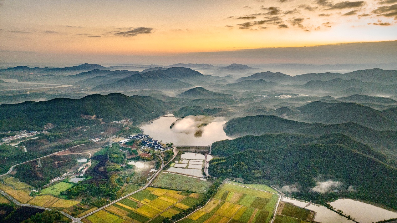 东山湖畔,一个更大的文旅综合体正在形成。由浙江春晖集团投资的东山大观酒店就坐落于其间,打造了中国美学度假酒店新山居赋典范。该文旅综合体涉及以中药材基地为特色的中医养生谷、萌宠产业乐园、水上运动中⼼、湖畔餐厅等体验项⽬。其在餐饮上主打从农场到餐厅的理念,依托6000多亩的土地面积,打造“东山舜耕”农创品牌,已开发⽵林鸡、双双鹅、东山湖鱼、山茶油、青瓷文创等产品。