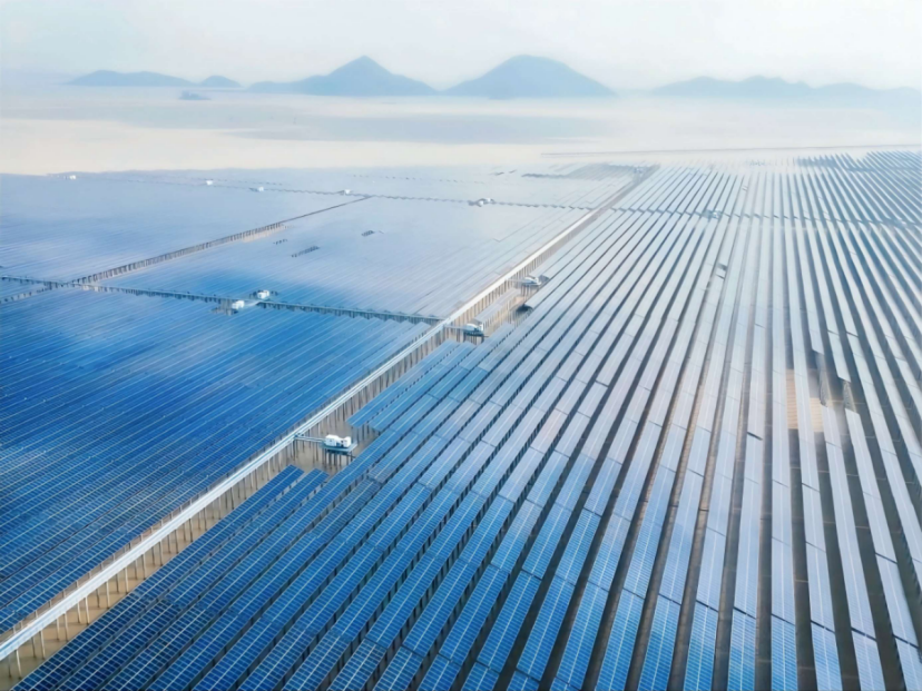 远眺浙江省台州市三门县健跳镇东部海域,规整的光伏阵列沿着海湾徐徐展开,在阳光下折射出一片蓝色科技矩阵;光伏板下,核电温排水在海底静静流淌。当前,这片波光粼粼的“光伏海”已铺设架设完成77%,迎来项目最后攻坚阶段。