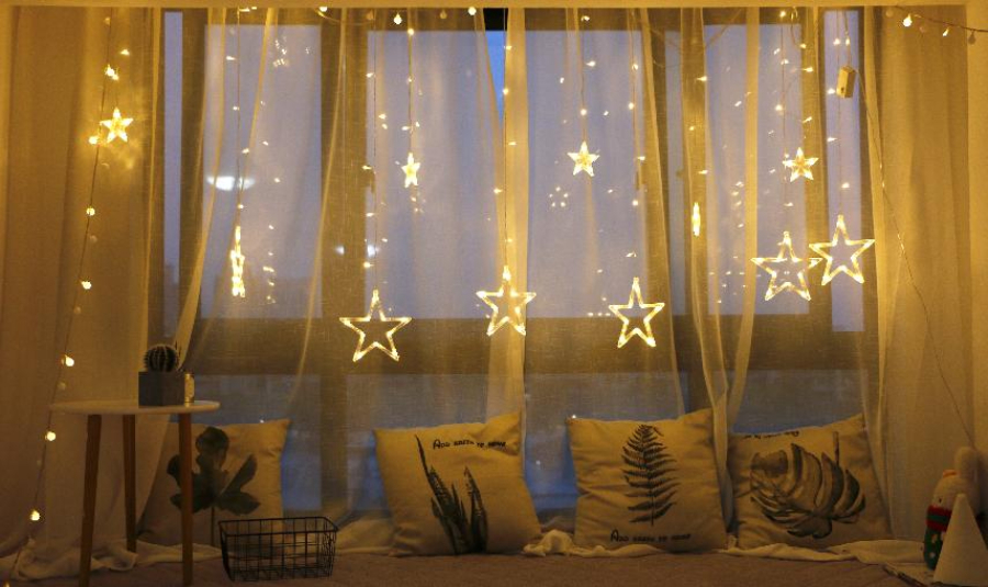 临海市大凡电子科技有限公司生产的LED五角星树灯,成为许多民宿的景观装饰。新华网发(临海市大凡电子科技有限公司供图)