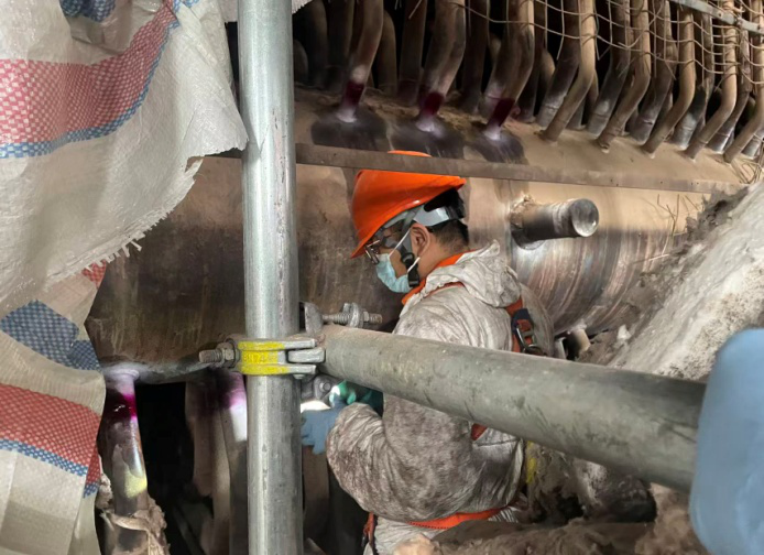 由白马公司投运的600MW超临界CFB机组,建成投产后将进一步强化四川省的电源结构支撑,对调整能源结构,实现能源发展与环境保护具有重要意义。在本次检验任务中,浙江省特科院配合中国特检院对其2号锅炉(600MW超临界参数燃煤汽轮发电机组)进行内部无损检测项目(MT、PT、UT)检验。由中国特检院和浙江省特科院组成的技术专家组,完成了主蒸汽管道、再热蒸汽热段、冷段管道,主给水管道一级高温过热器、高温再热器等锅炉部件的无损检测工作,并针对检查中发现的多处问题,提出专业化整改建议,有效保障了该项目特种设备安全运行。