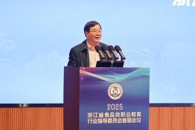 12月19日上午,浙江省食品类职业教育行业指导委员会首届会议在浙江经贸职业技术学院顺利召开。浙江省市场监督管理局二级巡视员朱小都,全国食品工业职业教育教学指导委员会主任委员毛建卫,浙江省市场监督管理局食品安全抽检监测处处长王群,浙江省食品类职业教育行业指导委员会副主任委员、浙江经贸职业技术学院副校长林锋出席会议。本次会议以“深化产教融合、服务食品安全、赋能人才培养”为主题,汇聚政府部门、行业企业、高等院校、职业院校、科研机构等多方代表,共同研讨浙江省食品类职业教育的发展路径与创新实践。会议由浙江经贸职业技术学院党委委员、副校长程余伟主持。