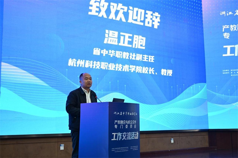 省中华职教社副主任、杭州科技职业技术学院校长温正胞致欢迎辞。