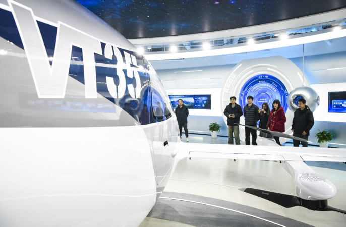 走进中心产品展示区,亿航智能EH216-S无人驾驶载人航空器与新一代长航程无人驾驶载人航空器VT35静静陈列。这里不仅完整展示着亿航智能的历代产品谱系,更生动呈现了文成低空经济从起步到蓬勃发展的历程,见证了低空经济创新突破与地方产业发展的深度融合、相得益彰。中心还规划布局研学文创生活区与维保孵化飞服区,形成“销售+运营+孵化+维保+研学+安全”的全链条服务体系。