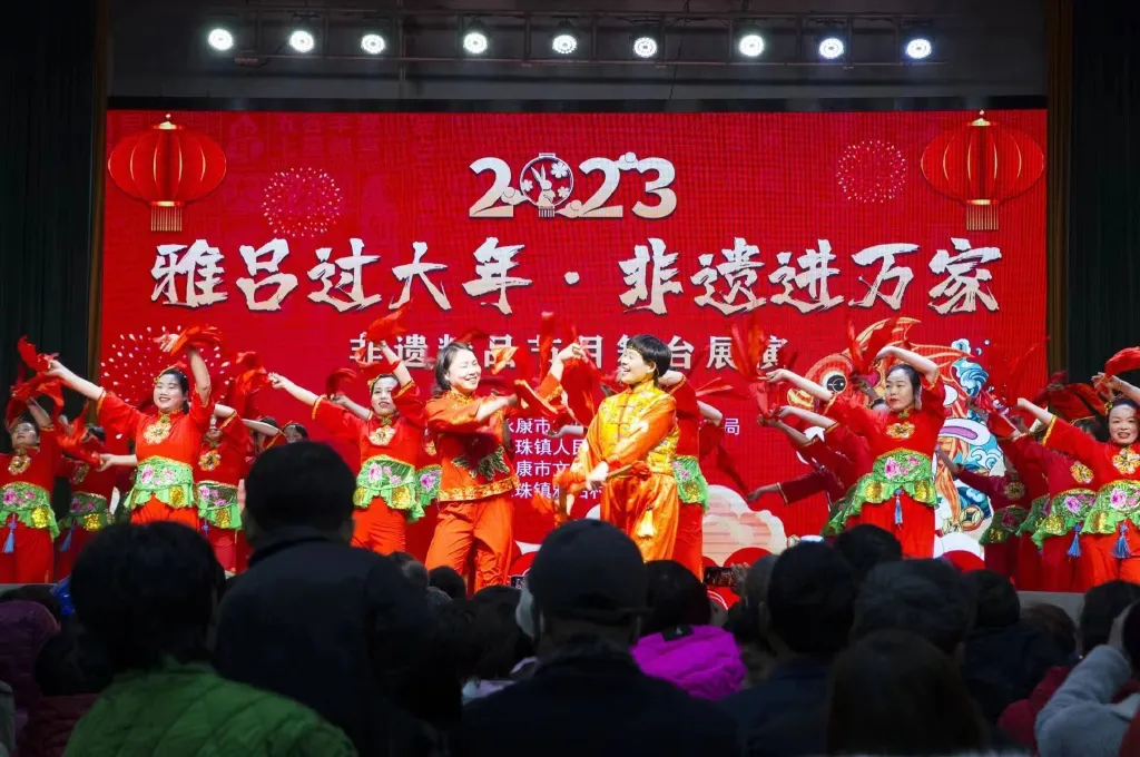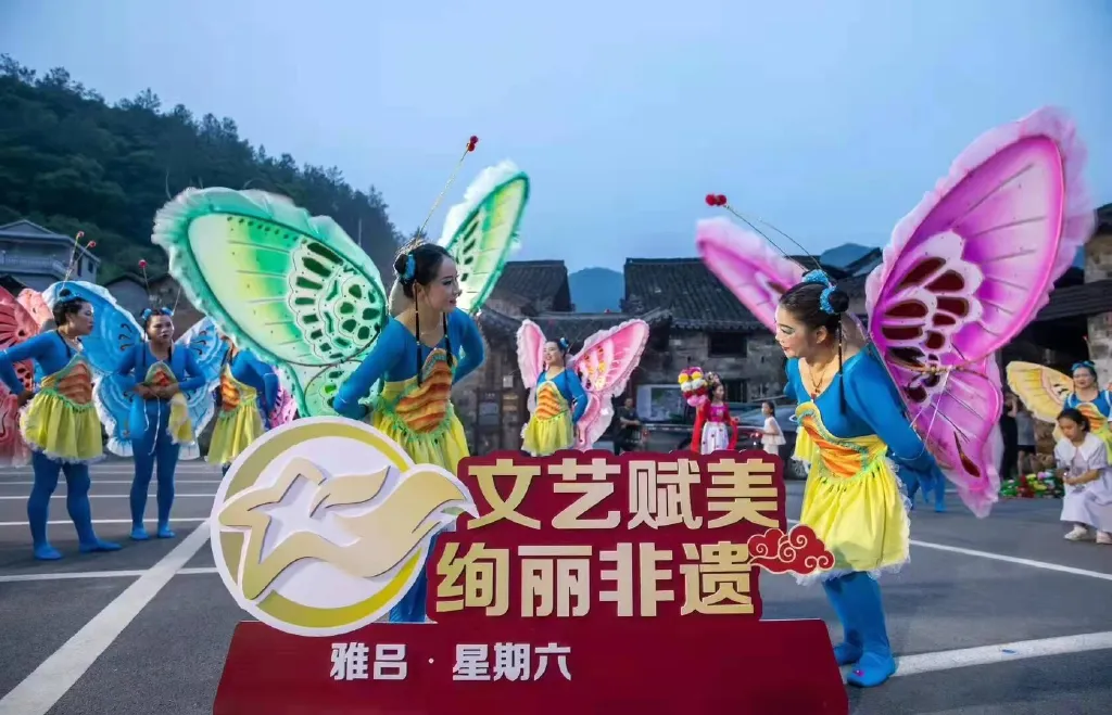 “十一”期间,非遗展演晚会在雅吕村拉开序幕。“十八蝴蝶”彩蝶翩翩起舞,“九狮图”狮子共舞,腾跃展现“九狮夺珠”雄浑气势,戏剧变脸看得台下叫好声不断……多种民俗节目齐上阵,村民表演,村民参与,贡献了一出自给自足的文化大餐。