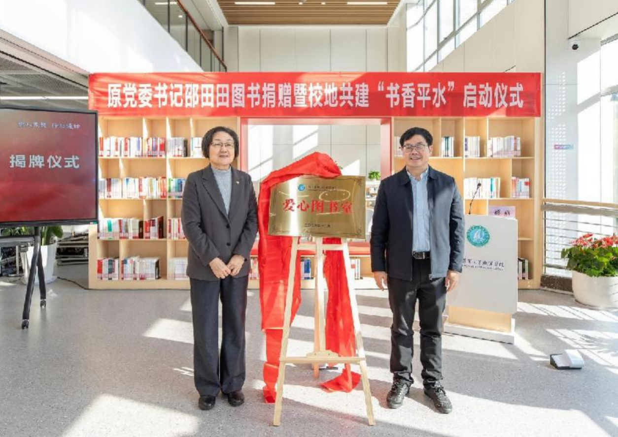 活动现场,浙江农业商贸职业学院党委书记应良波代表学校接受学校原党委书记邵田田的图书捐赠,双方共同为依托这批捐赠图书设立的“爱心图书室”揭牌。据悉,此次共有3816册承载着文化记忆的珍贵图书捐赠至学校,所赠图书涵盖经典著作、历史文献及绍兴地方文化史料,具有极高的学术价值与收藏价值,将用于支持柯桥校区文化建设。