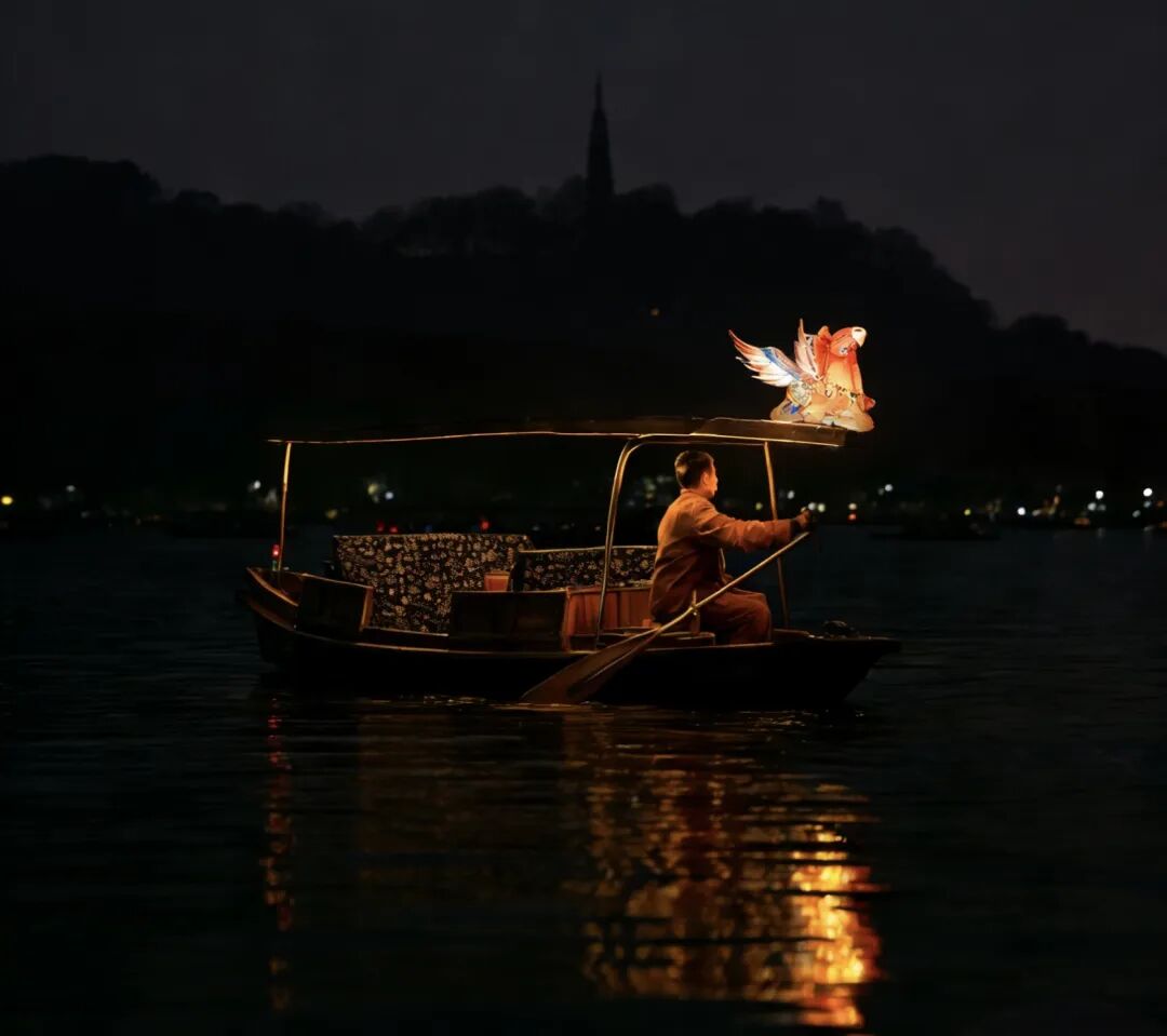 据介绍,杭州市文化广电旅游局此次以“西湖手划船”为载体,联合“王的手创”独家定制马灯,将灯彩制作技艺和优秀传统文化融合,打造西湖“马灯福气船”,以宋韵为魂、以骏马为形,一船一灯意蕴悠长。马灯以飞马为核心造型,既寄托了“昂扬奋进、超越进取”的美好期许,又深度契合杭州“敢为人先、勇攀高峰”的城市精神。设计上还融入了宋韵风格的两大经典元素——象征胜利与成功的定胜纹、诠释“生生不息”“永恒绵长”哲学思想的缠枝纹,让泛舟西湖的时光更具文化底蕴。
