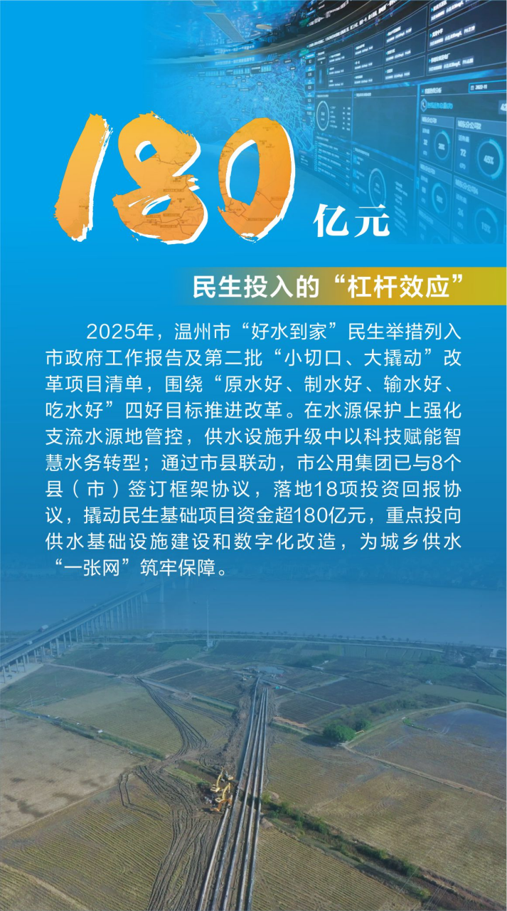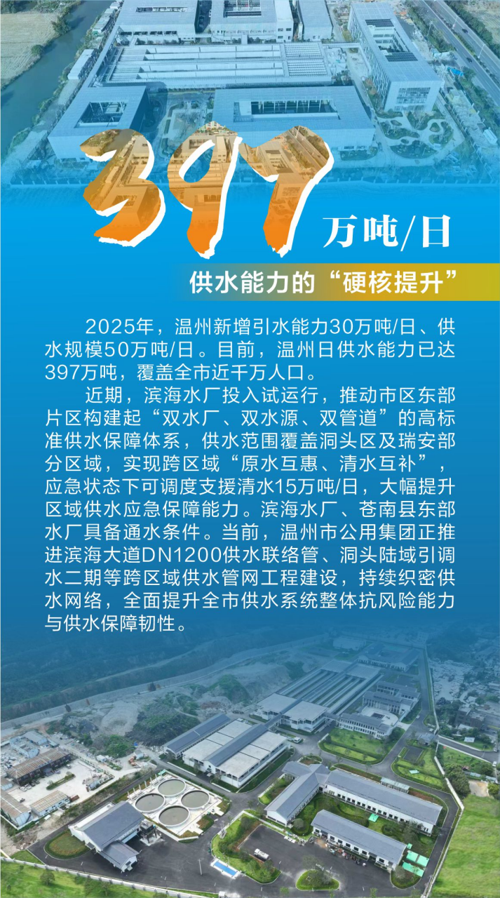 一张供水网覆盖全域,六大水源互联互通,农村自来水普及率达99.98%,城乡供水水质同质化率达96.5%……2025年以来,浙江省温州市以“好水到家”公用服务改革为抓手,推动城乡供水从“源头”到“龙头”全面升级。一组组数据背后,是温州在公用事业一体化改革中交出的精彩民生答卷。