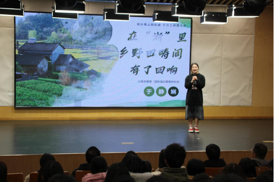 宁波大学科学技术学院的宣讲现场,于静娴同学带着乡野的泥土气息走上讲台。《在“浙”里乡野田畴间有了回响》的分享中,她讲述了淳安下姜村从“土墙房、烧木炭、半年粮”的破旧村,借“千万工程”东风逆袭成网红村的变迁,以及姜丽娟放弃杭州工作回村开民宿,带动全村发展民宿产业的故事,诠释了乡村振兴与共同富裕的生动实践,传递出青年扎根一线的坚定信念。