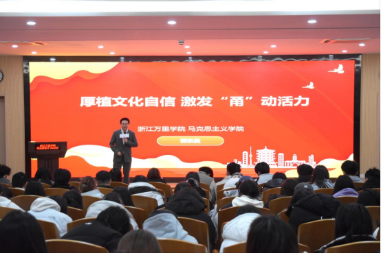 万里学院韩东奥则将目光投向本土文化,在《厚植文化自信,激发“甬”动活力》的宣讲中,他从天一阁典籍数字化讲到“海上丝绸之路”文旅新业态,从“知行合一”的城市基因谈到青年参与文化创新的责任,探讨如何让传统文化在新时代焕发新生。