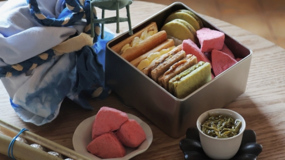越城拾贰朴宿“越香本草·拾贰韵”系列中的“越州三叠春·茶饮”,融合越乡龙井与胎菊、陈皮等本草,制成便捷冷泡茶包,让龙井风骨与草本韵味随时相伴。新昌慢游邮民宿将非遗小吃“番番酥烧”与山水好茶打包成礼,以“慢煮光阴,邮寄山水”为理念传递淳朴风味。而位于越城区的CYCLE LIVING乡村面包民宿推出的“趣茶屋”礼盒,则宛如一座移动的迷你茶寮,内含五蕴茶点、茶珠、蓝染茶席等,旨在为都市人打造一个可随身携带的宁静角落。