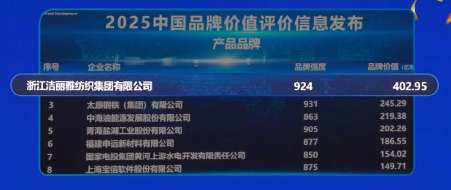2025年,洁丽雅品牌价值达402.95亿元,连续12年蝉联中国家纺行业第一,用实打实的成绩印证了“专注方能专业,深耕方能致远”的市场真理。