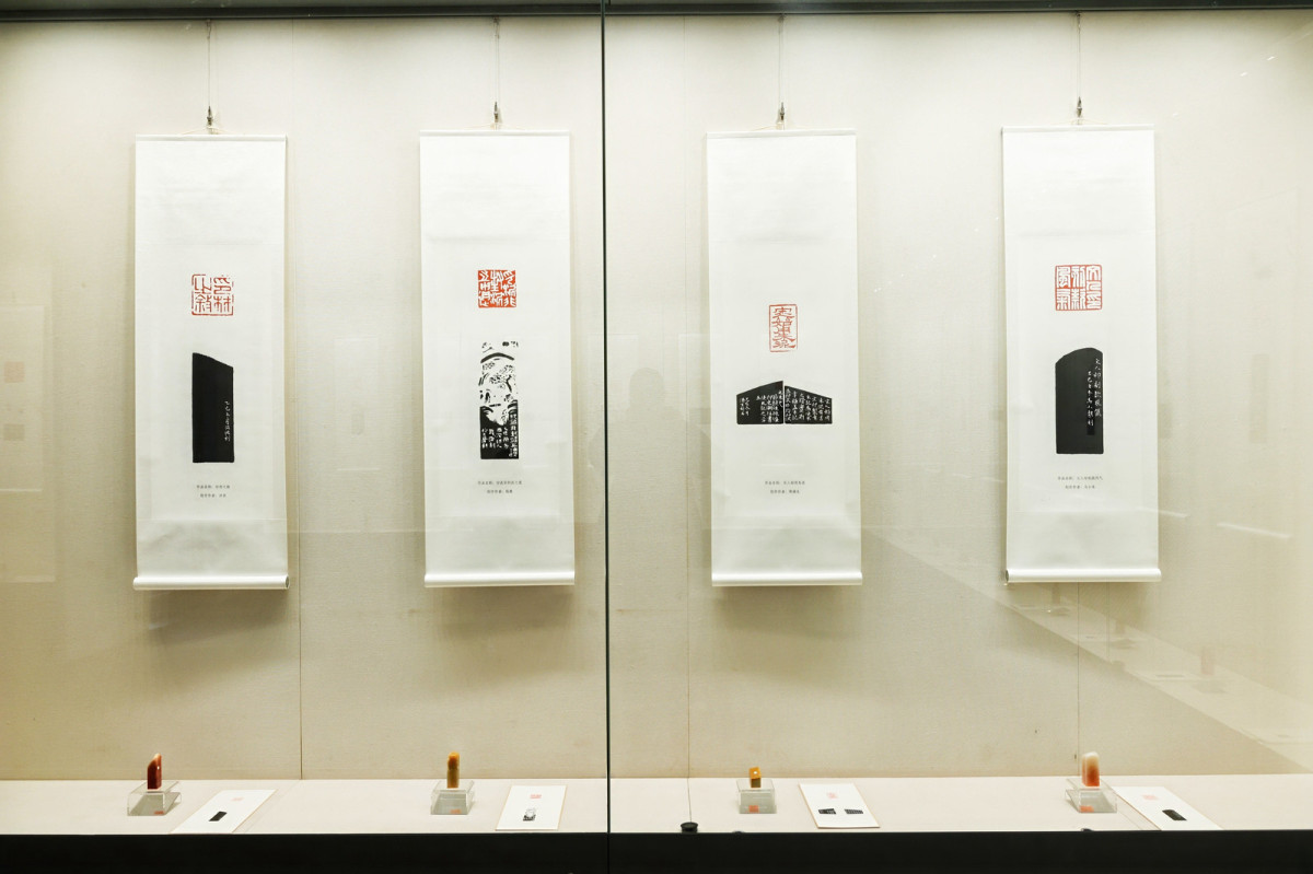 “篆刻展”于杭州西泠印社孤山社址和中国印学博物馆展出,该展区集中展示了紧扣《印学史》篇章主题创作的70件篆刻新品。每件作品均配有印屏、原石及原拓印谱,旨在通过具体的艺术实践,直观呈现关键概念与历史脉络,着重于印史脉络的梳理与篆刻技艺的现实表达,呼应了沙孟海金石研究的扎实学风。