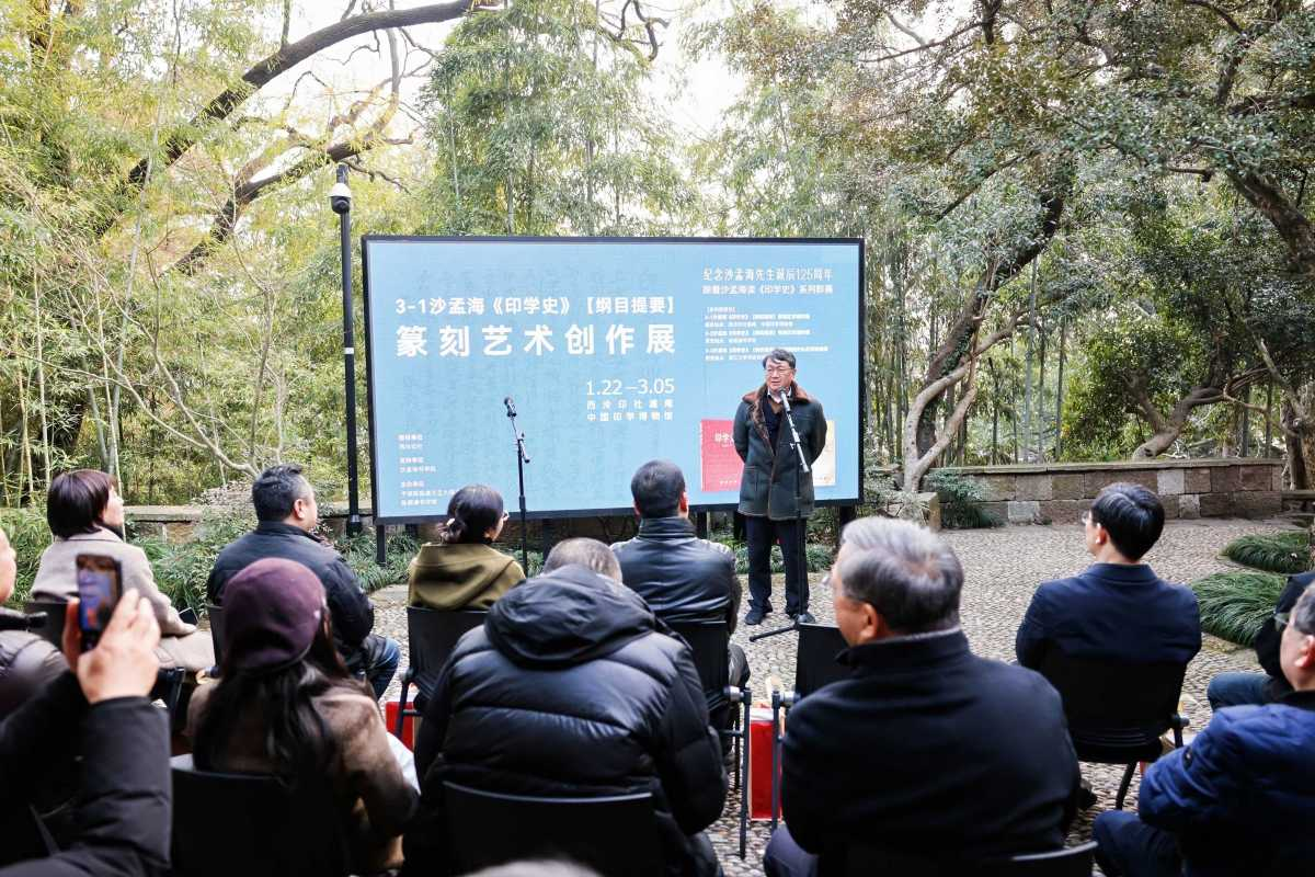 1月24日,“大师印迹:跟着沙孟海读《印学史》系列群展”开幕式在杭州西泠印社孤山社址遁庵举行。
