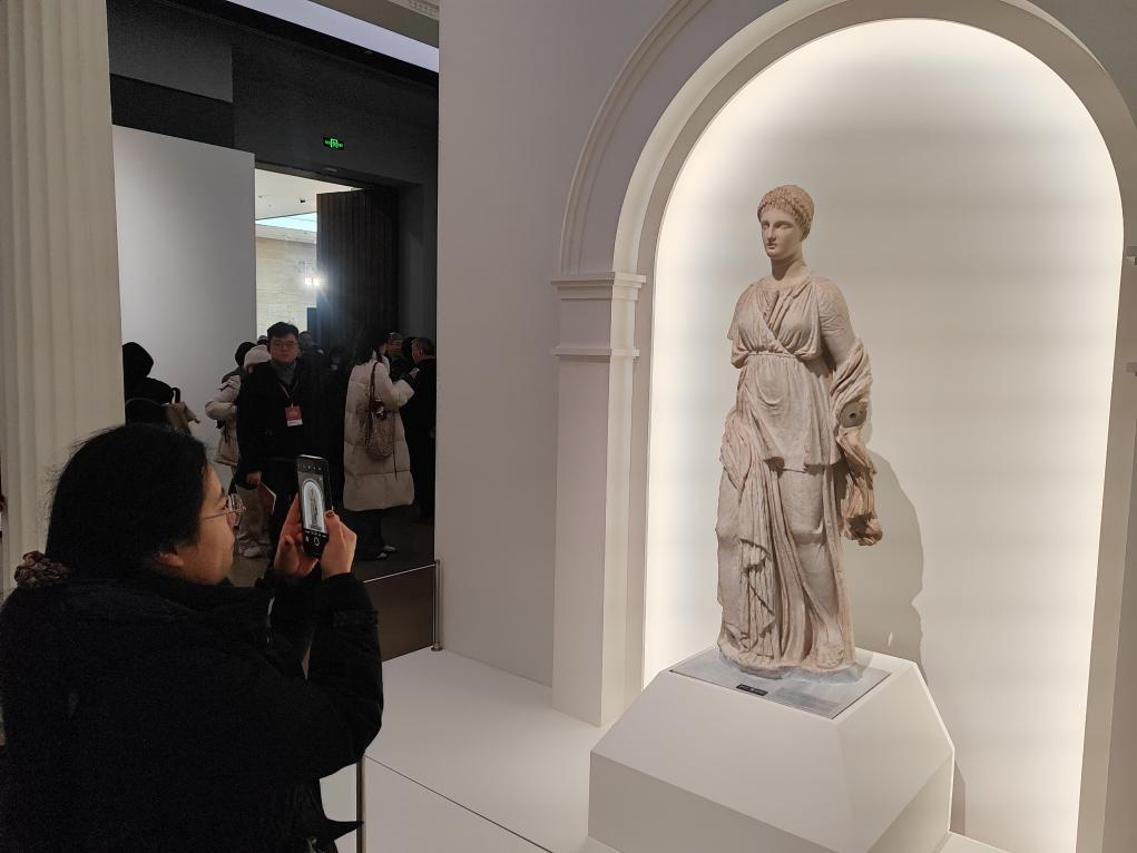 一根根仿古石柱,在展厅里勾勒出类似古希腊神庙的空间,其间是一件件古希腊文明留下的精品文物,“古希腊的旅程”展览1月30日在杭州市余杭区良渚博物院开幕,向中国观众展现众多古希腊文物精品。