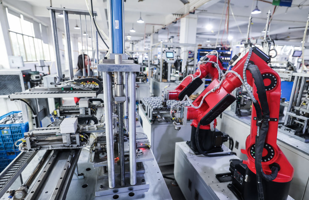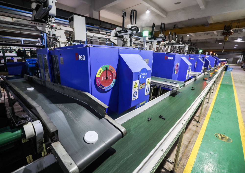 1月29日,在位于金华市金东区的金顺工具有限公司车间内,自动化流水线上在生产设备配件。该公司是一家从事喷枪、喷涂机等喷涂技术与产品研发、制造和销售的国家高新技术企业、国家专精特新“小巨人”企业,产品出口销往欧美97个国家和地区,授权专利197项。