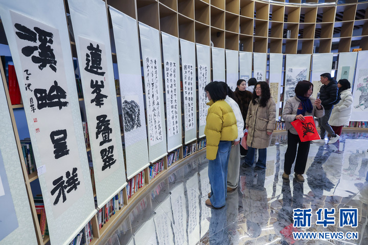 2月1日,游客在莲花镇戴家村乡趣馆看画展。